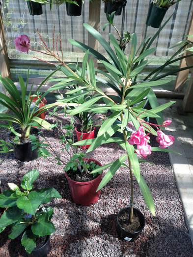 Nu mai am loc. Am plantat la inceput cind ne-am mutat doi hibiscusi si au crescut cit casa.Pe linga ei mai am alte plante mici (muscate,cale,clivia..).Pentru a avea loc de leandri a trebuit sa scot alte tufe de flori.