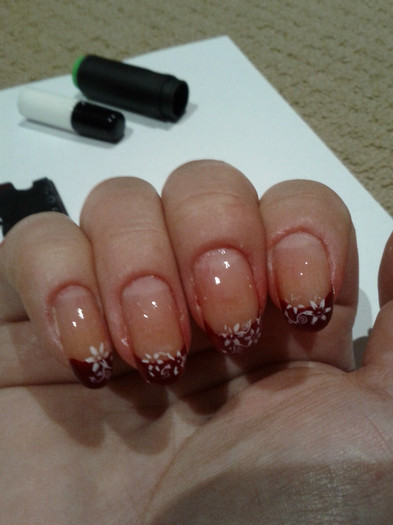 foarte frumoase unghiute,culoarea e splendida si floricelele..fistichii!